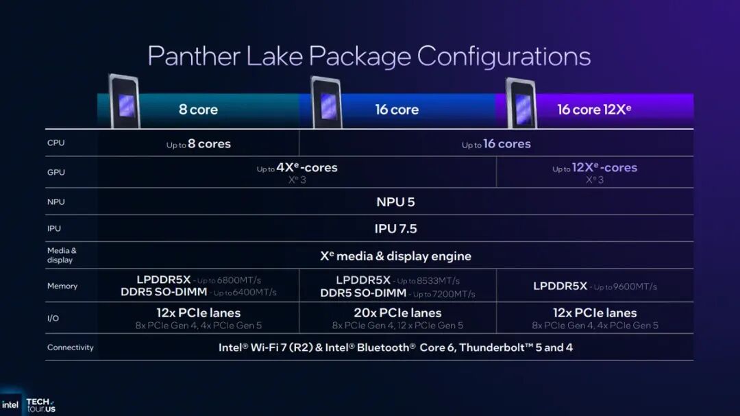 英特尔的 Panther Lake CPU 将分为三种不同的芯片配置,每个 SoC 都有不同的成本和性能目标。