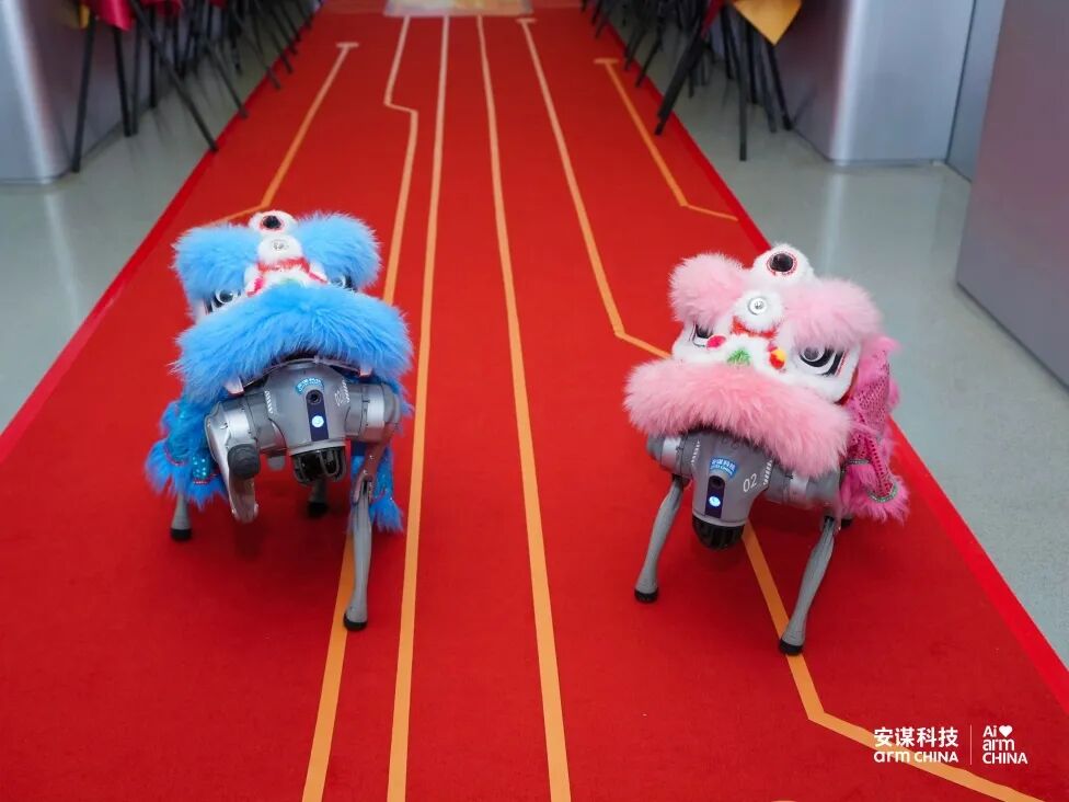 活动别开生面,AI无处不在:从参与主持的机器人,迎宾互动的机器狗,AI创意舞狮,到AI建模的裸眼3D视频、AI文生图辅助创作的IP产业万象图,以及通过AI技术修复呈现的Arm创始谷仓打卡点,无不彰显着安谋科技站在AI科技前沿,以及将AI深度融入实践的创新能力。