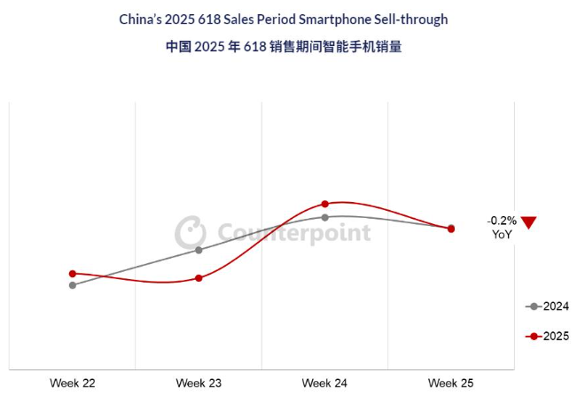 7月4日消息,根据市场调研机构Counterpoint Research 最新公布的《中国智能手机每周销量追踪报告》显示,2025年第二季中国智能手机销量预计将较去年同期小幅成长1%,增长动能主要来自华为与苹果等品牌。