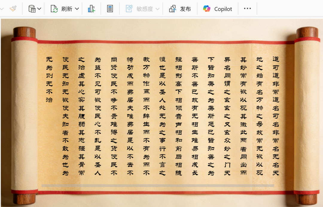 图表使用中文字体,纵向排列,从右向左阅读,以下是道德经片段: