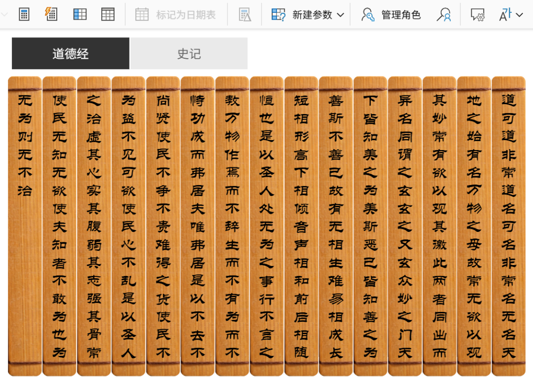 </svg>"度量值中的font-family可以使用中文字体的英文名称(需注意字体是否免费)。按钮背景上传竹简照片,完工。