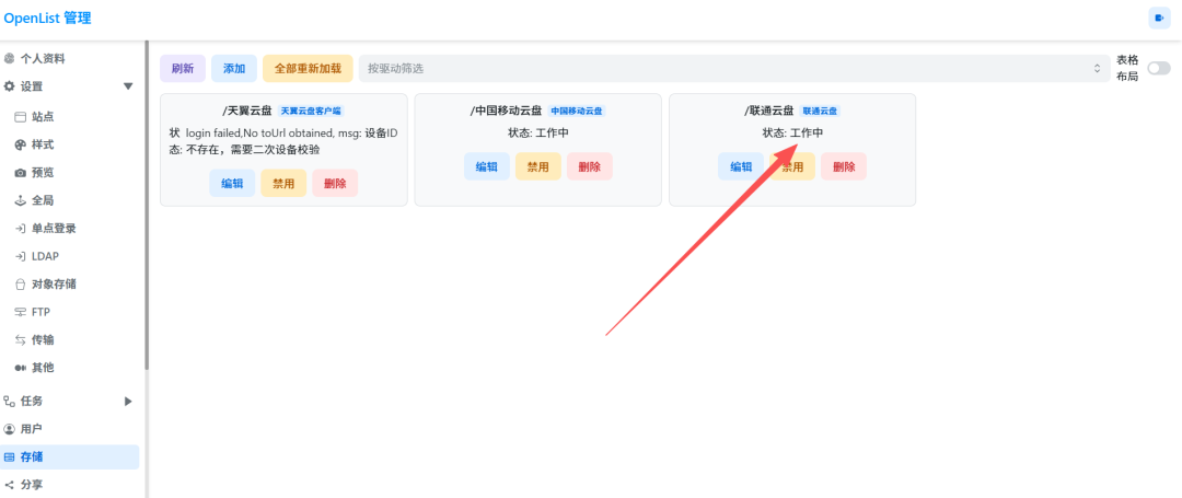 openlist进行挂载中国移动云盘和电信天翼云盘,UC网盘都已经出过教程了,在飞牛官方公众号中fnos。下面我来搞一个挂载联通的教程吧,其他的步骤我不再概述了,可以看飞牛教程。