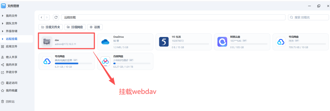 这样就已经挂在成功了,可以尽情的体验了。挂载其他盘也是类似的方法,参考Alist官方文档就可以了。