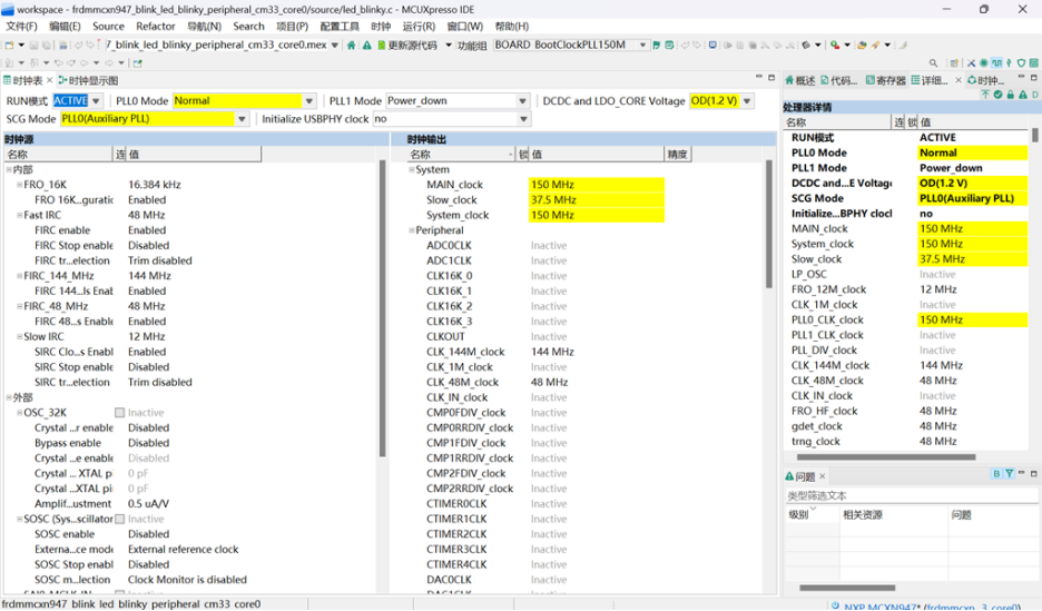 时钟配置工具同样具备强大的实用价值。MCXN947芯片的时钟树结构较为复杂,包含多个内部振荡器(FRO)与锁相环(PLL)模块。通过时钟配置工具,开发者可直观配置各功能模块的时钟频率,且工具会自动校验配置参数是否符合芯片规格。同时,工具可自动计算并匹配分频系数与倍频参数,大幅简化了时钟树配置的难度与工作量。