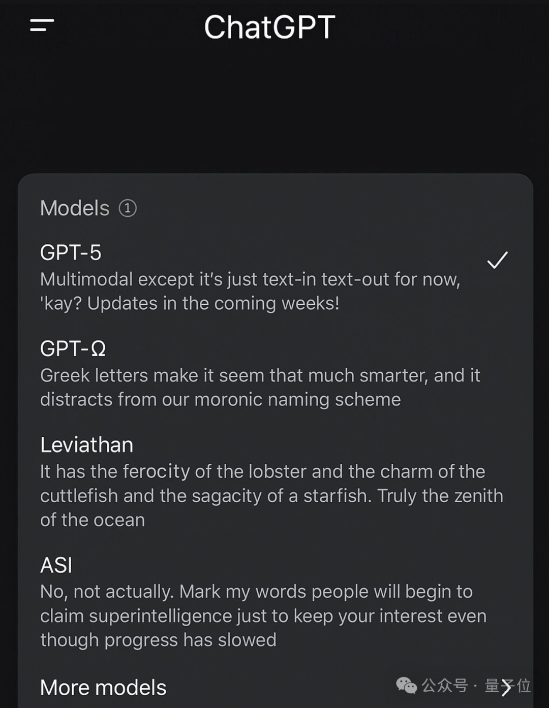 而且在MacOS应用的模型列表中也发现了GPT-5。
