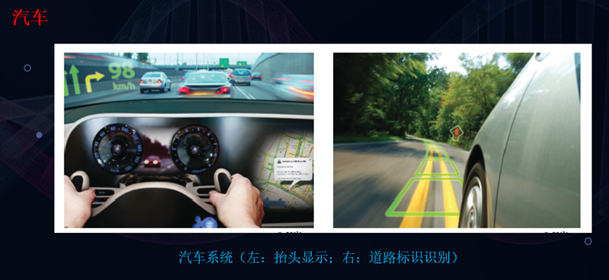 在汽车领域,可用于显示控制和道路识别。