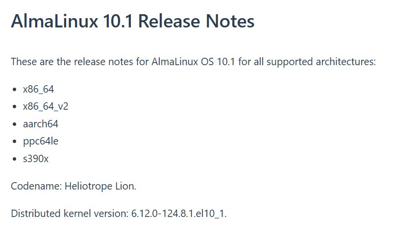 2025 年 11 月 24 日 AlmaLinux 10.1 正式发布。