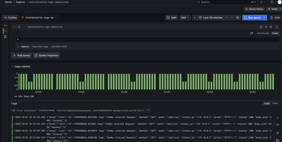 http://victoria-logs:9428。Explore 功能查询日志,或构建仪表盘展示关键指标。特性 | VictoriaLogs | Loki | ELK |