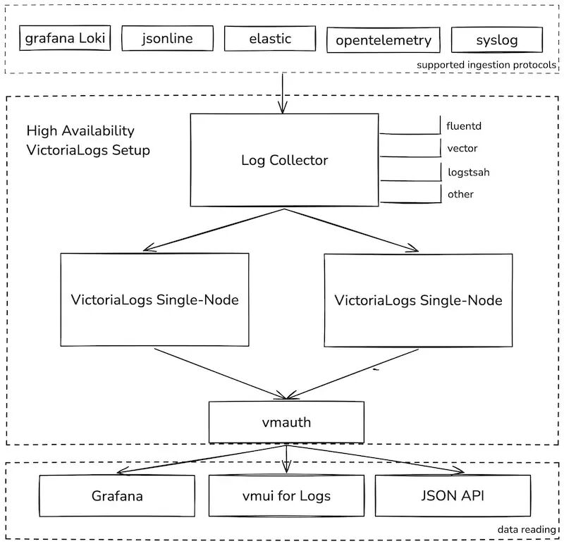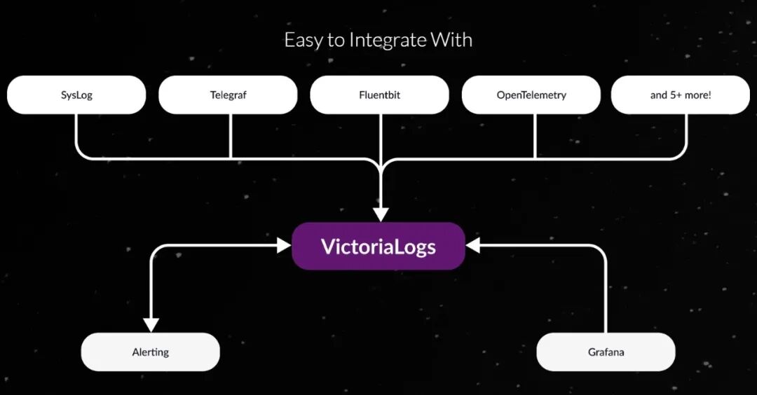 虽与 VictoriaMetrics 同属一个团队,但 VictoriaLogs 是独立项目,不依赖 VictoriaMetrics 构建。其架构更轻量,支持作为独立日志系统或命令行工具(类似 grep)使用。