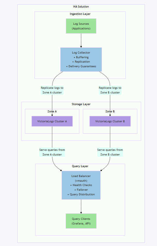 集群模式下的 VictoriaLogs 由三个主要组件组成:vlinsert、vlselect 和 vlstorage。