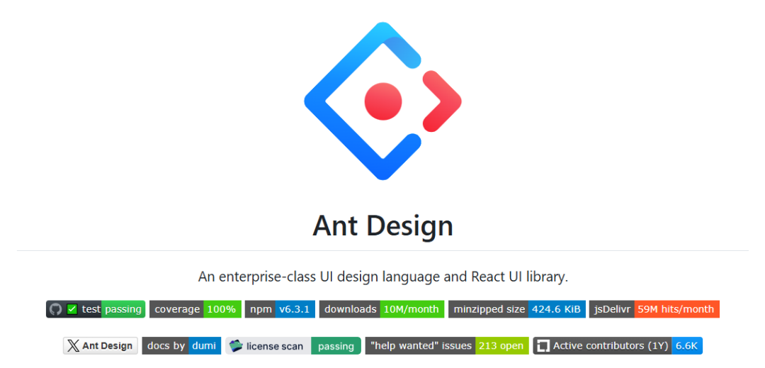 特点:丰富的React UI组件,基于React的组件化开发模式。