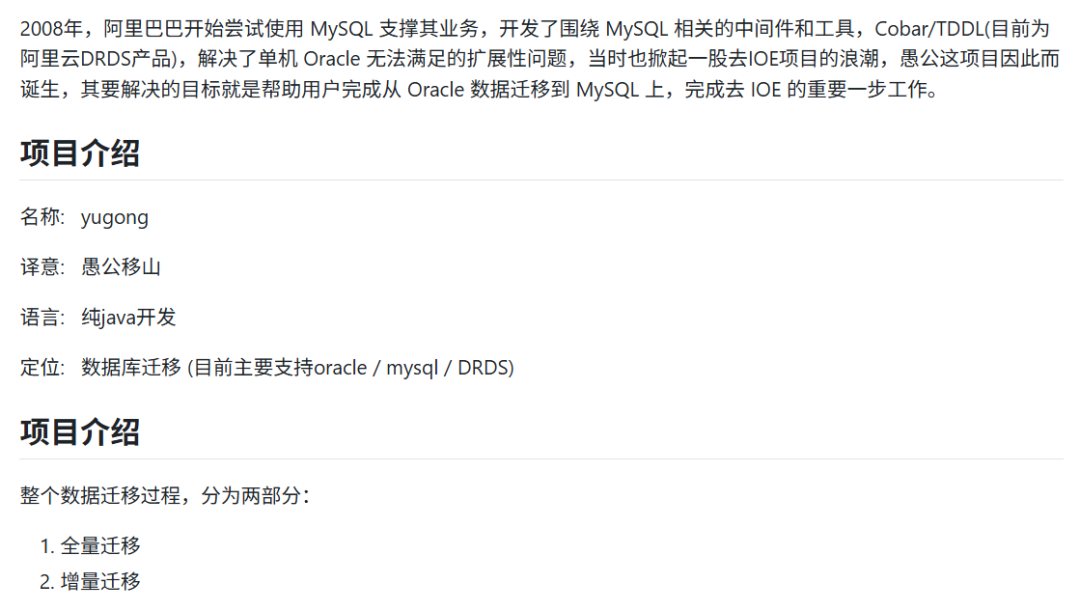 Yugong 是阿里巴巴开发的一款数据库迁移工具。