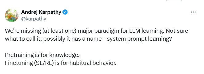 Andrej Karpathy 从 Claude 的超长系统提示里,获得了灵感,提出“系统提示学习”这一新范式。