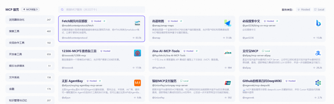 第二步, 访问 modelscope.cn 找到要使用的MCP: