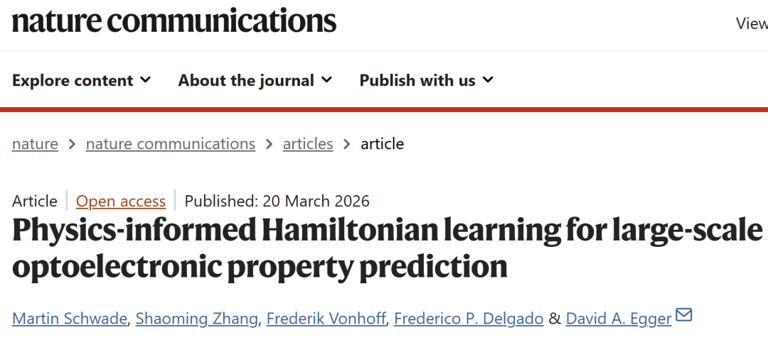 Schwade, M., Zhang, S., Vonhoff, F. et al. Physics-informed Hamiltonian learning for large-scale optoelectronic property prediction. Nat Commun 17, 2652 (2026).
