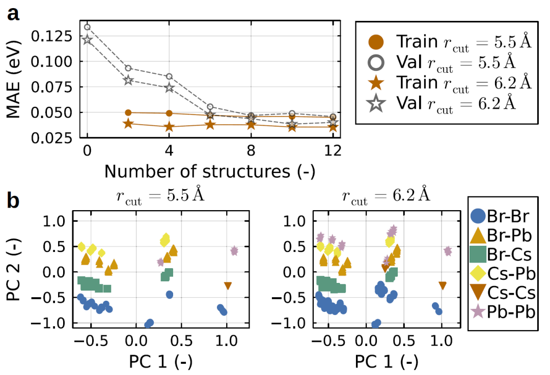 图2:CsPbBr₃ 体系的模型训练过程与描述符分析。