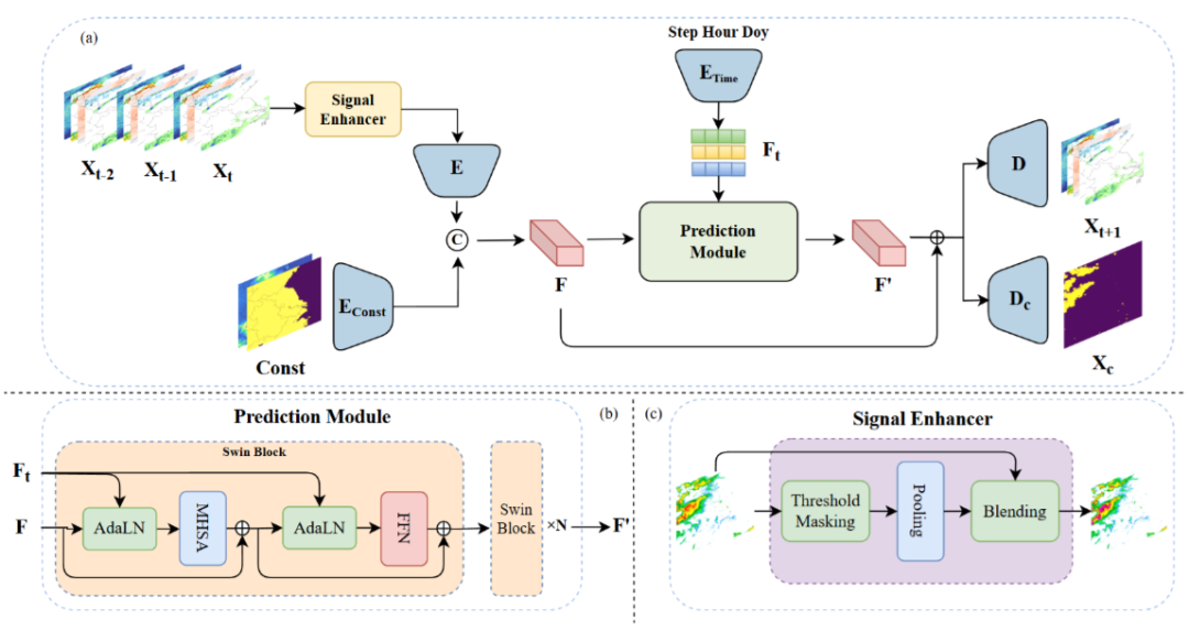 本文作者团队敏锐地抓住了两个突破口:一是利用机器学习天气预测模型FuXi-2.0提供的三维大气场作为"大尺度驱动场",既规避了传统NWP的时效延迟问题,又为深度学习模型补充了关键的环境场信息;二是设计了针对性的对流信号增强模块和分布感知损失函数,从技术层面缓解强度衰减问题。这种"全球-区域耦合、动力-学习融合"的思路,本质上是在数据驱动框架中注入物理过程的合理表征,是当前大气科学交叉研究的前沿方向。