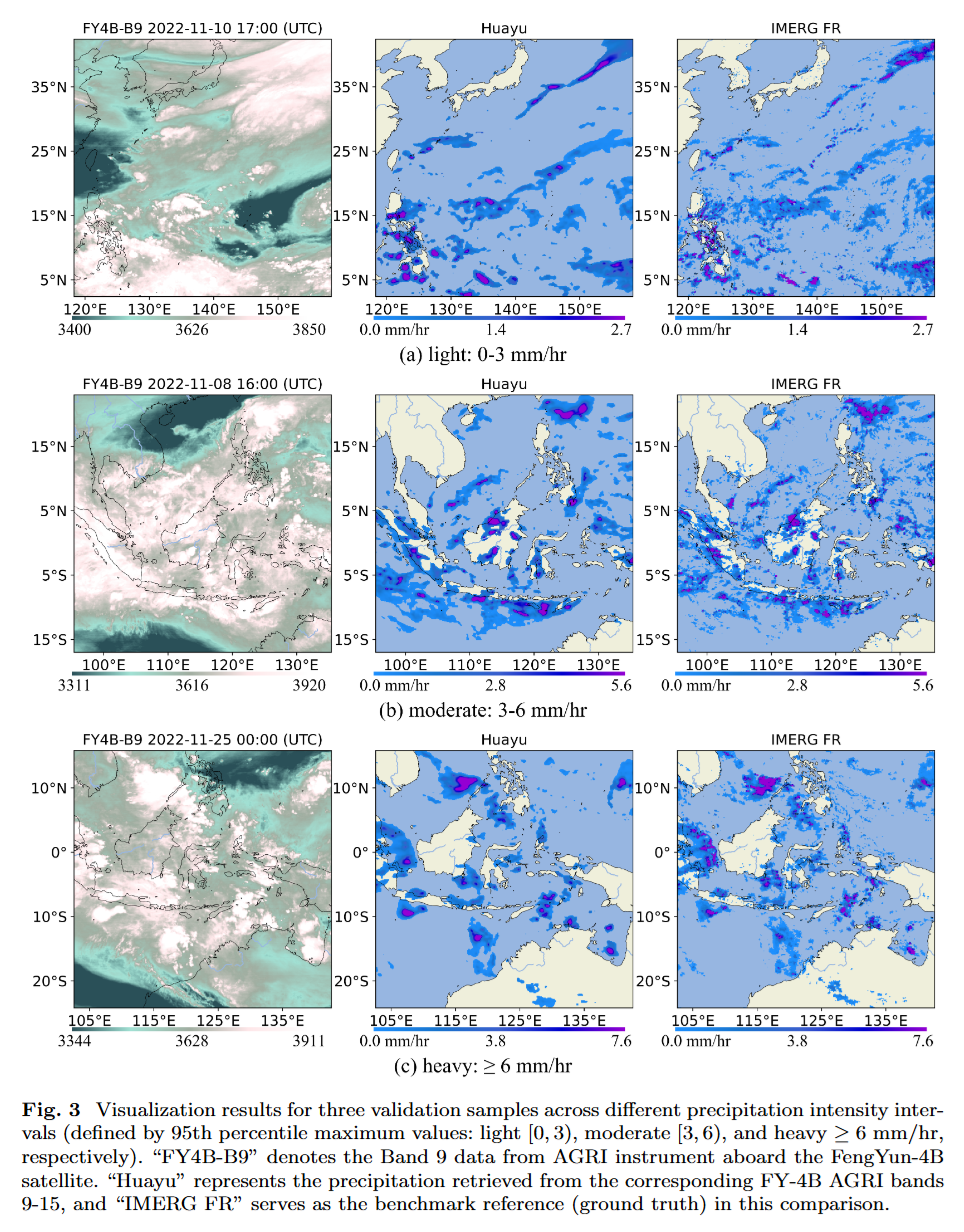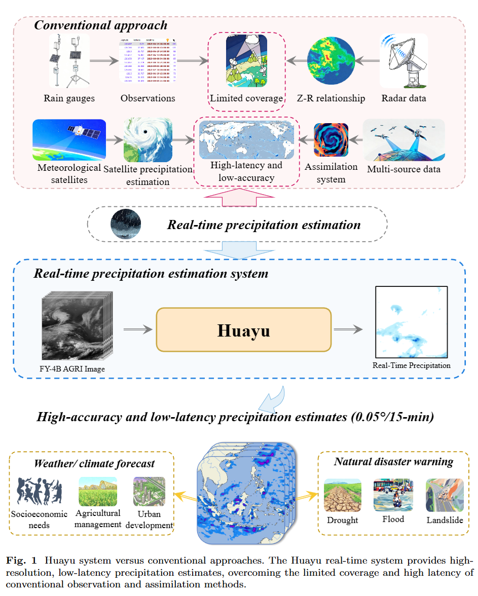 本文由华东师范大学等机构的研究团队提出了一种基于机器学习的、利用地球静止轨道气象卫星(风云四号B星,FY-4B)红外数据进行高时空分辨率降水估计的新系统——Huayu。