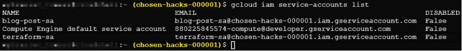 gcloud iam service-accounts list