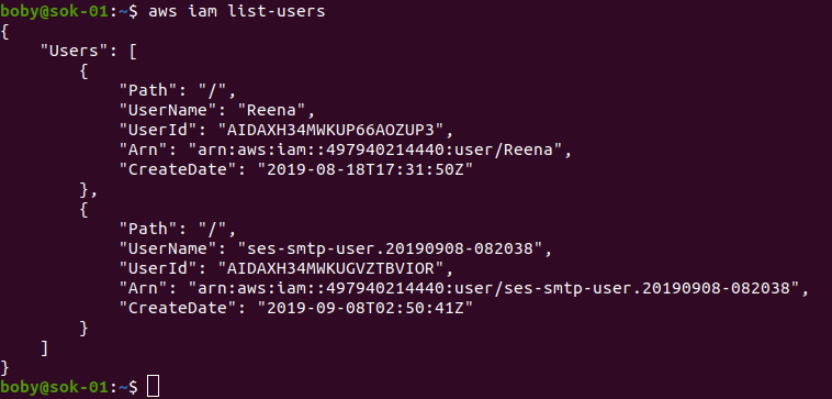 aws iam list-users