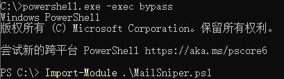 在使用前需运行如下命令打开PowerShell并导入mailsniper