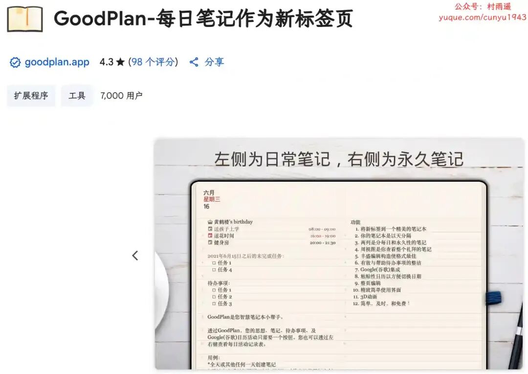 [11]GoodPlan:https://chromewebstore.google.com/detail/goodplan - 每日笔记作为新标签页 /icokiikdmaaecdehkchflilmbmmedpga