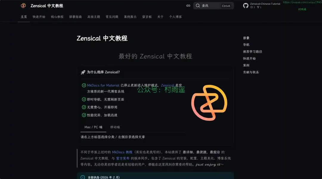 最详细、最便捷、最前沿的 Zensical 中文教程。