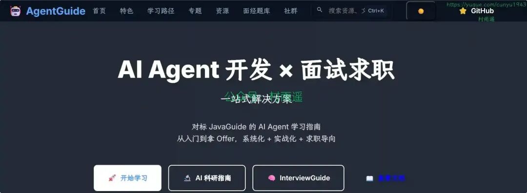 AI Agent 学习指南,从入门到拿 Offer,系统化 + 实战化 + 求职导向。