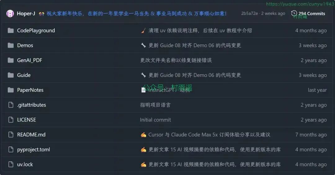 [13] AI / LLM 大模型入门项目: https://github.com/Hoper-J/AI-Guide-and-Demos-zh_CN