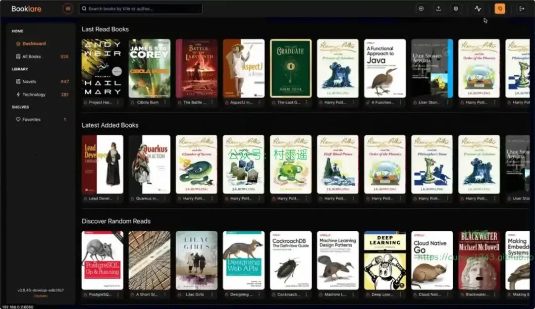 一款功能强大的自托管 Web 应用程序,旨在优雅轻松地组织和管理您的个人图书收藏。通过直观的界面、强大的元数据管理和无缝的多用户支持构建您的图书馆。