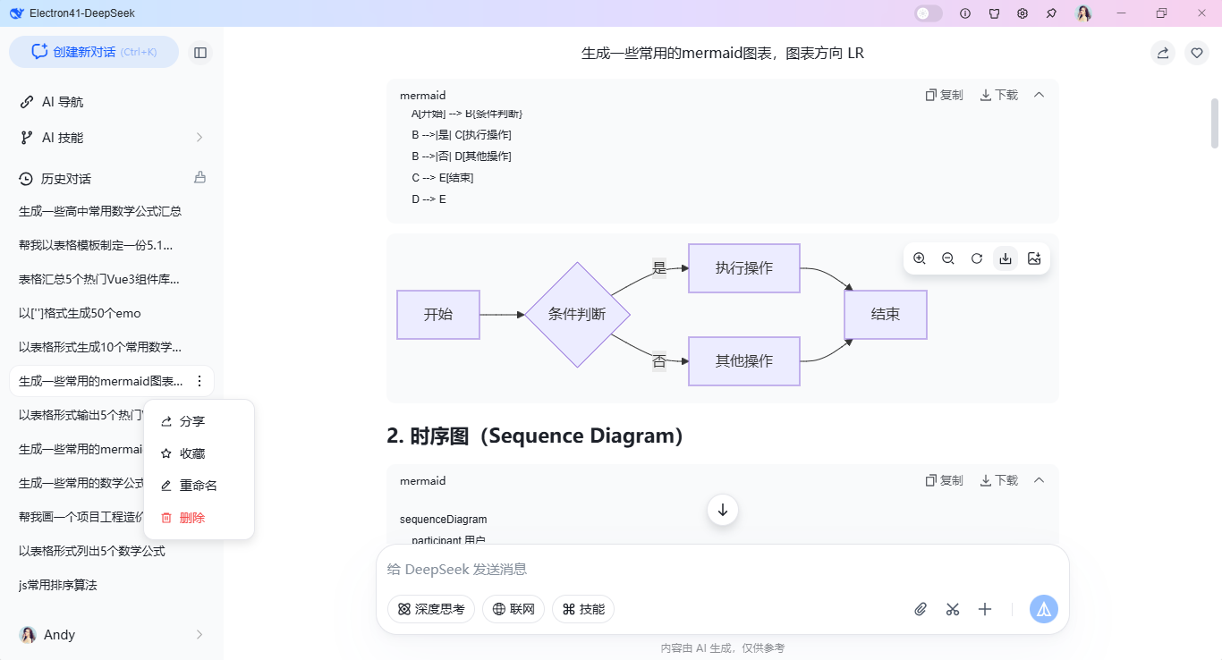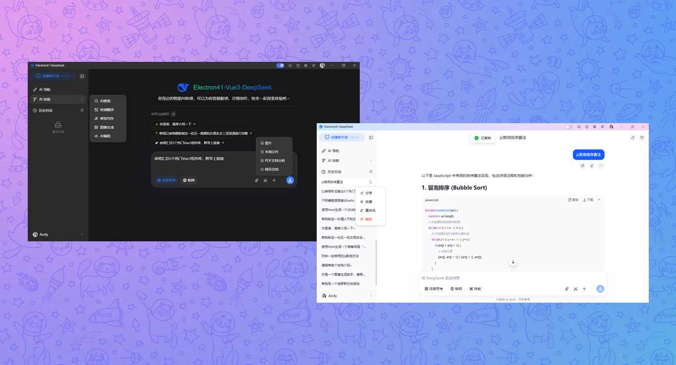 基于Electron41跨平台框架整合Vite8.0全家桶,对接DeepSeek api大模型。