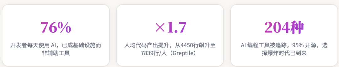 2026 年工具已经太多——204 种 AI 编程工具被追踪,95% 开源。选择焦虑是常态。但入门路径其实很清晰:从最快见效的地方开始,逐步深入 Agent 模式。