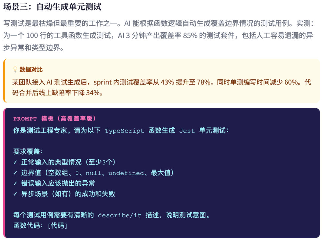 负责电商支付模块重构,借助 Cursor Agent 模式,AI 自动读懂老代码、生成新架构、写单测、处理边界情况。他只做了方向决策和最终 Review,3天交付了原计划2周的工作量。