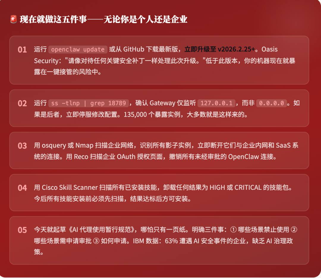 ✅ 通过标准:内网无公网暴露实例;所有版本已更新;所有 OAuth 令牌已审计撤销