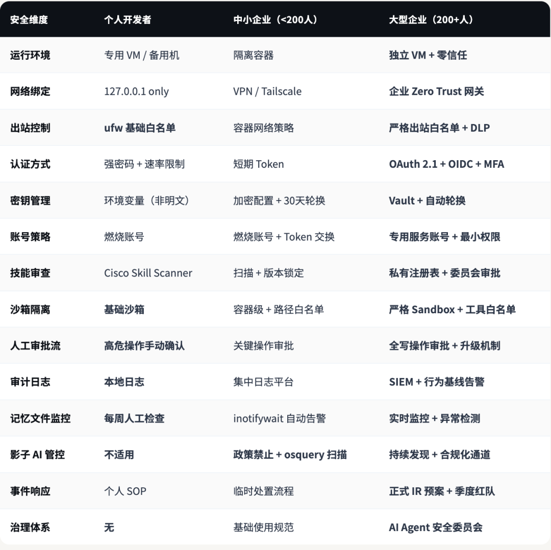 6、配置矩阵:个人 / 中小企业 / 大型企业对比