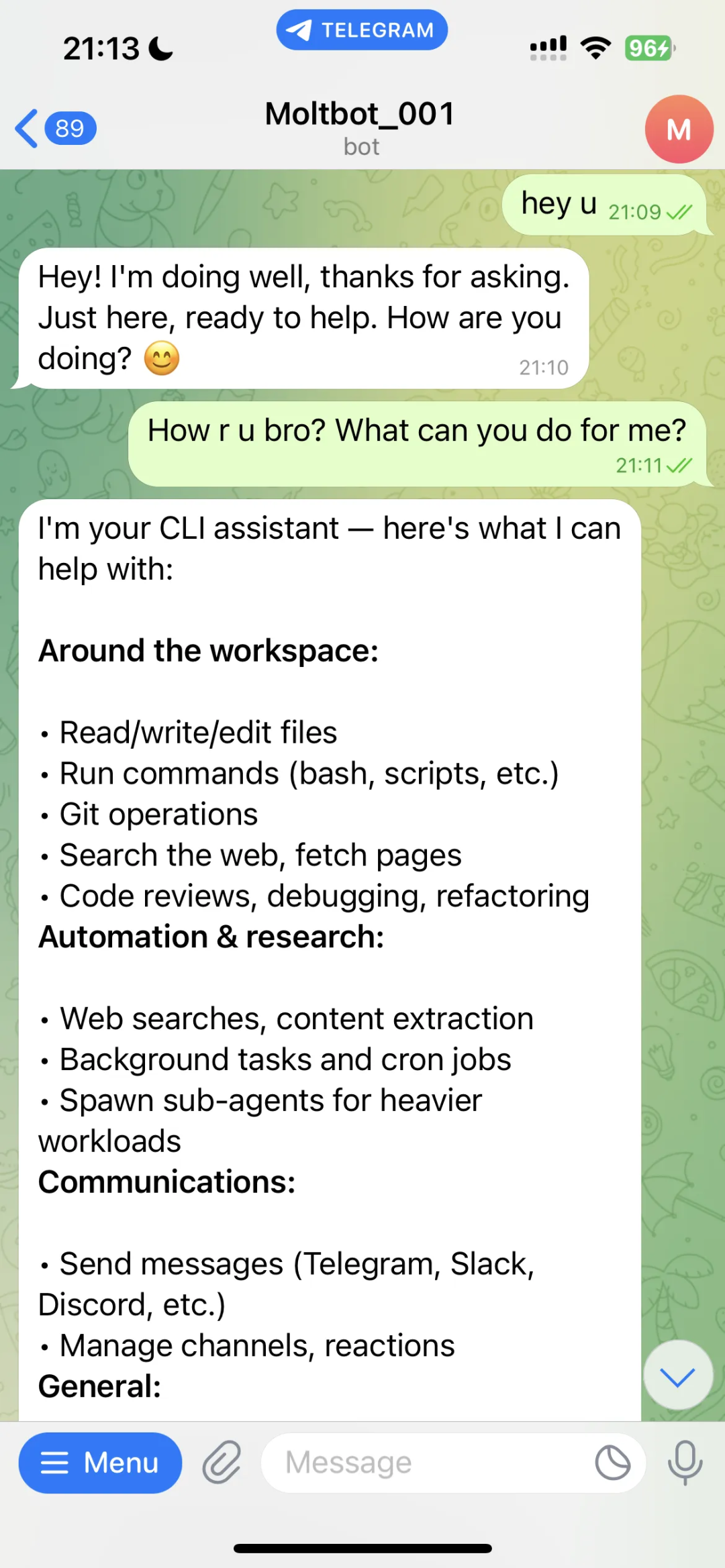 用户: "帮我查一下天气并发到 Telegram"
