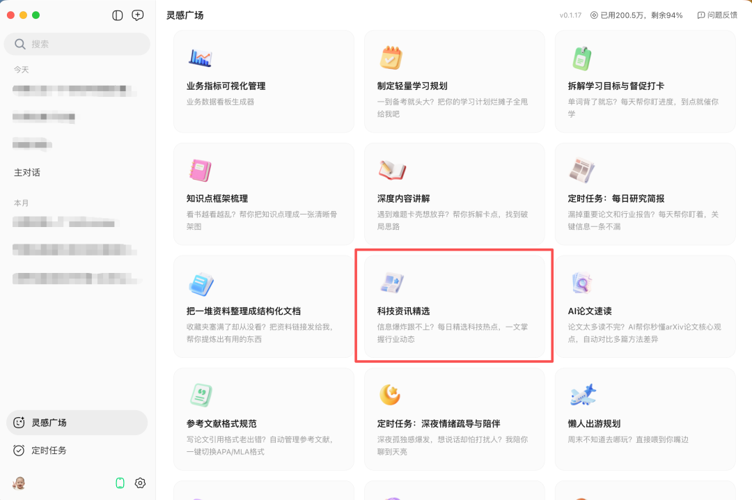而在 QClaw 的灵感广场中,目前已经直接内置了一个科技资讯精选的Skill,可以基本满足我的诉求。后续我打算总结一下自己的常用站点和选题判断思路规则,直接写一个自己的规则出来,这样会更加贴合实际需求。