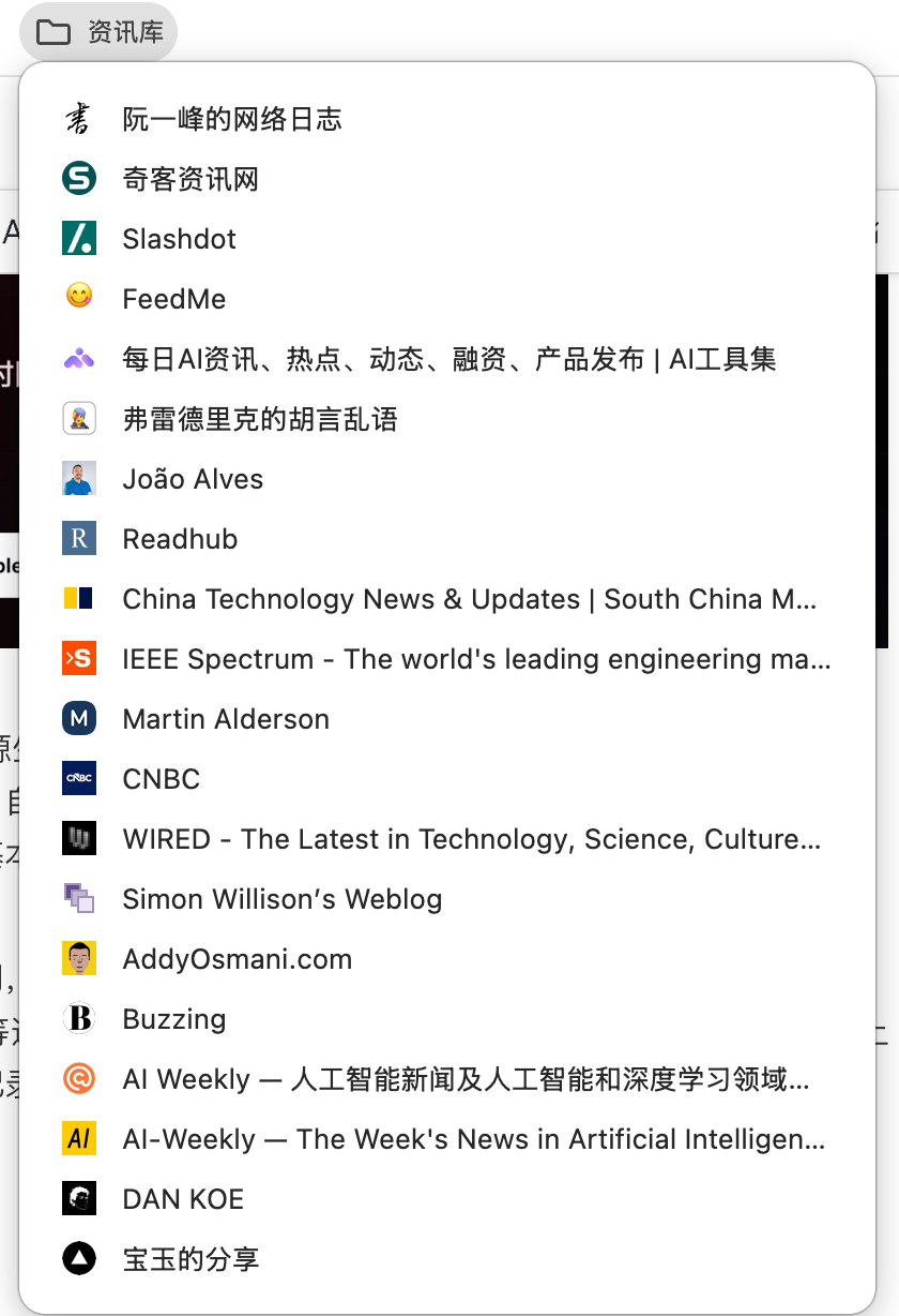 过去我也尝试过 RSS 订阅,但最后发现还是浏览器收藏夹来得方便,给大家看看: