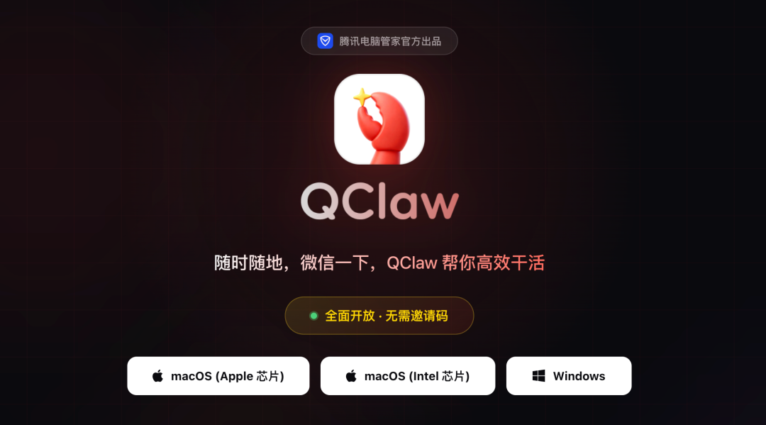 官方下载链接请认准:https://qclaw.qq.com/