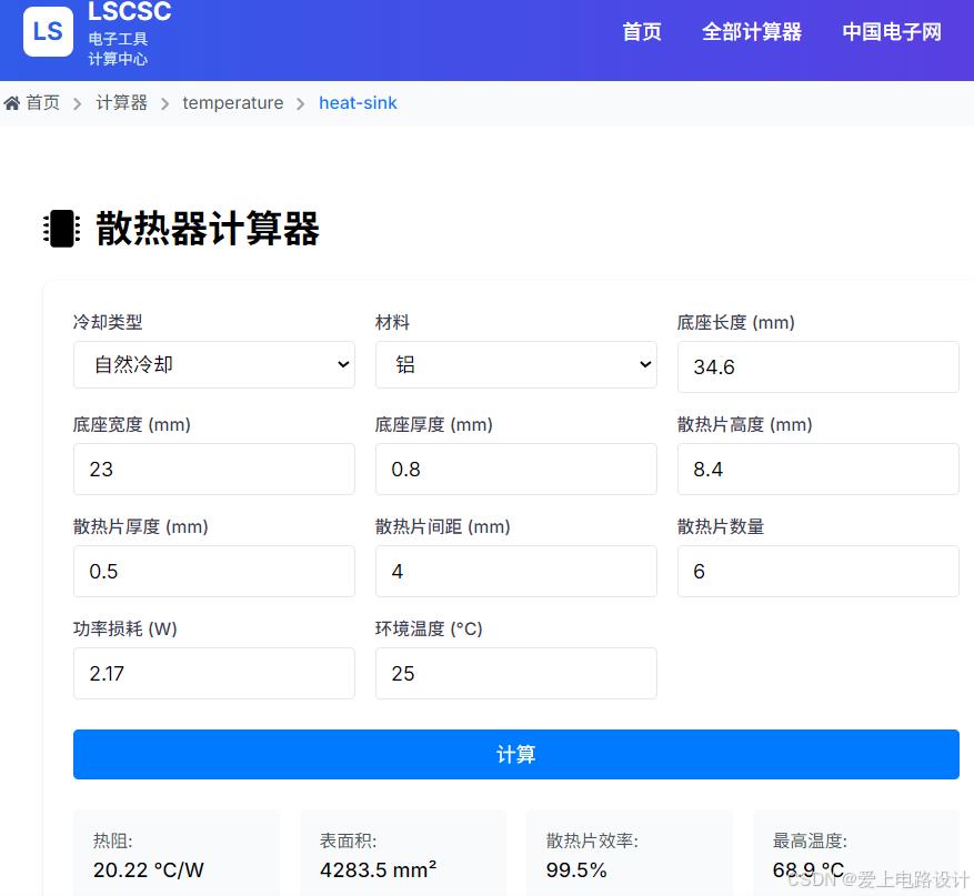 ▼计算此散热器的温升:https://www.lscsc.com/zh/calculators/temperature/heat-sink。