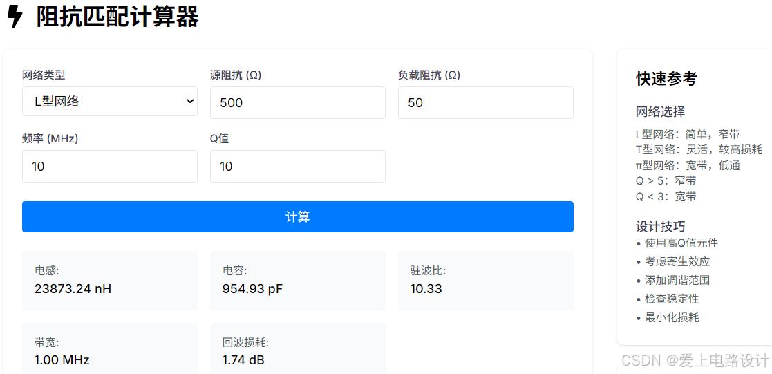 ▼计算电感、电容的值:https://www.lscsc.com/zh/calculators/circuit/impedance-matching。
