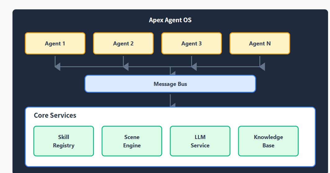 Apex定位为轻量级Agent操作系统,它不是传统意义上的应用软件,而是一个运行智能Agent的基础平台。作为Agent OS,Apex提供了: