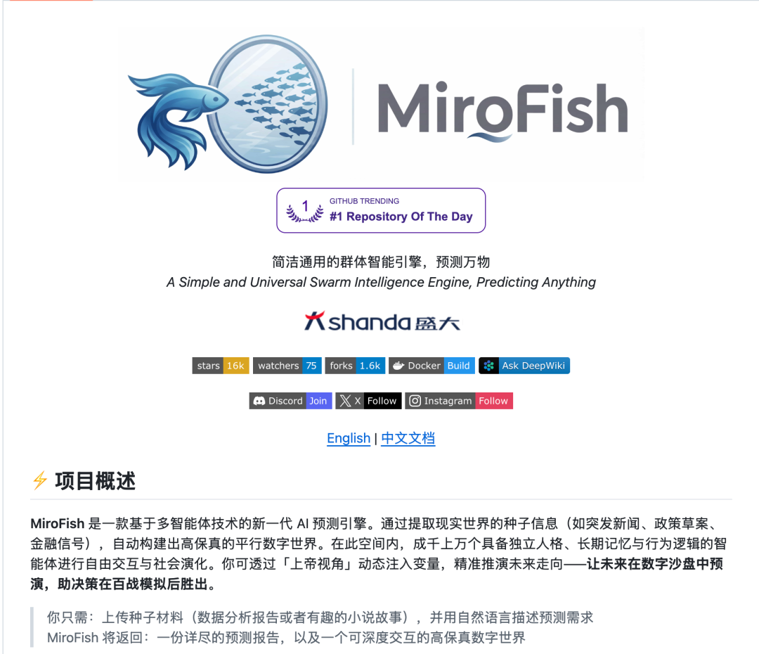 中科大学生 BaiFu,20 岁,用 Vibe Coding 花 10 天做了一个多 Agent 舆情分析工具叫 BettaFish,开源后 GitHub 一周爆涨 20k star,目前 36k。之后他加入盛大,又花 10 天做了第二个项目 MiroFish,一个 AI 预测引擎。