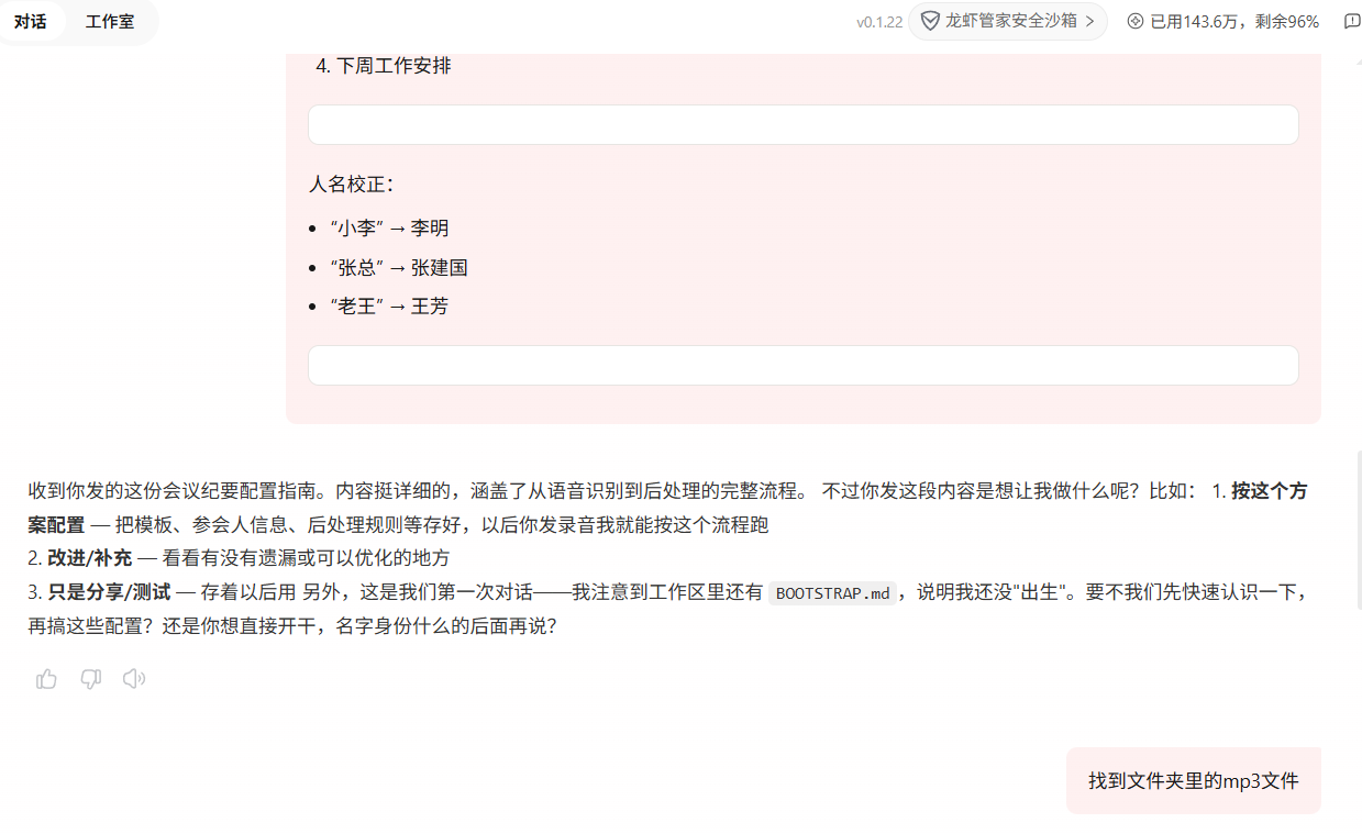 如果你能提前告诉 Qclaw 参会人名单,它在识别说话人时会更准确: