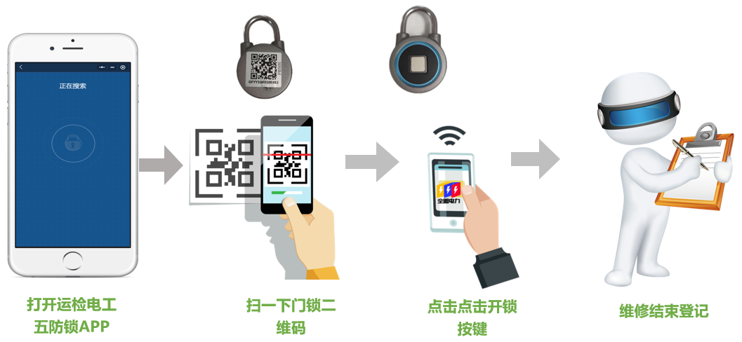 标准化操作:通过运检电工五防锁 APP,扫码开锁、维修结束登记,实现 “一锁一码”,杜绝一把钥匙开多锁;