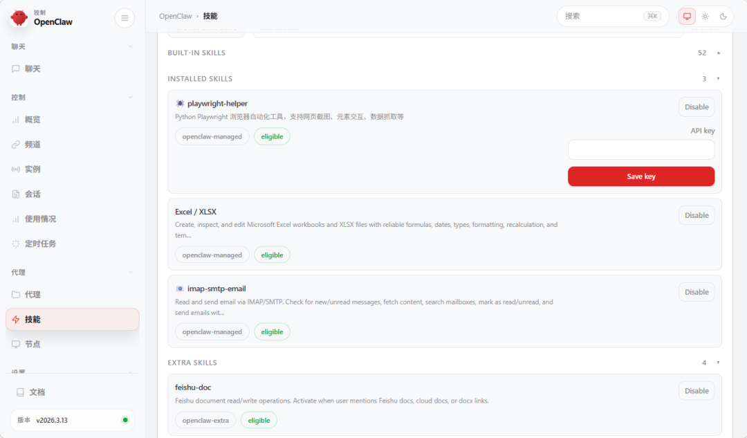 在OpenClaw中,除了自带的技能,还可以手动安装其他技能。当然,可根据自身条件开发属于自己的技能。 本文,就让我们一起来学习吧!