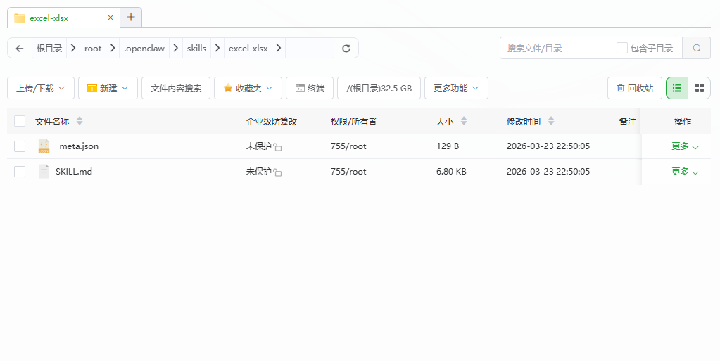 接下来,将文件解压/root/.openclaw/skills/excel-xlsx 注意excel-xlsx是当前技能的目录。