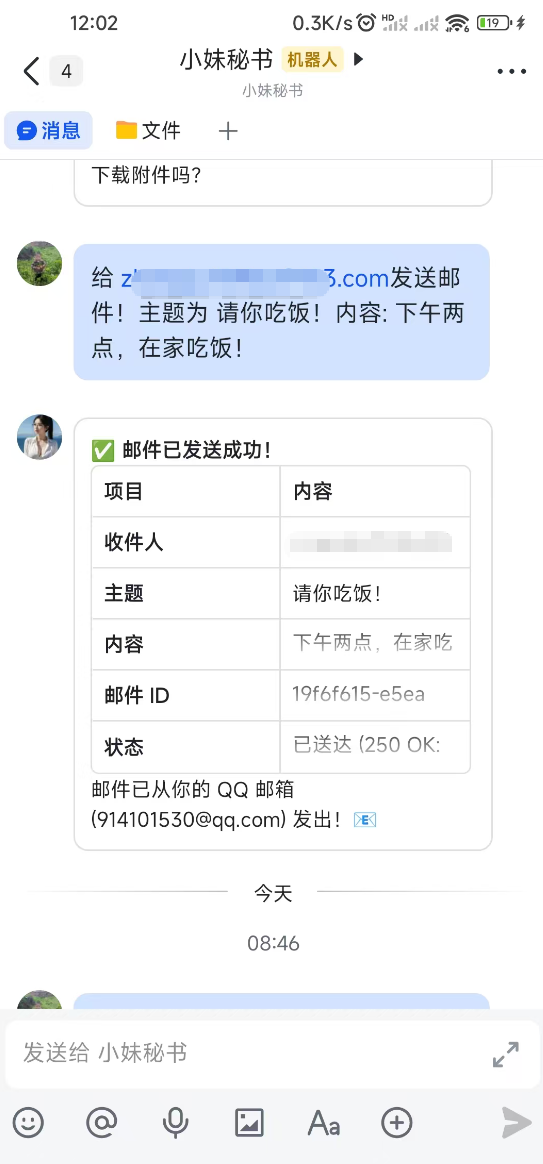 现在,我们让Ai助手进行读取邮箱测试。