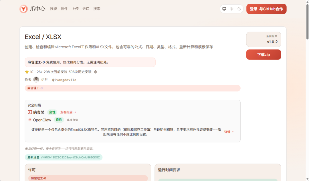 如,针对EXCEL文件处理的技能,可以先点击下载按钮,下载技能包!