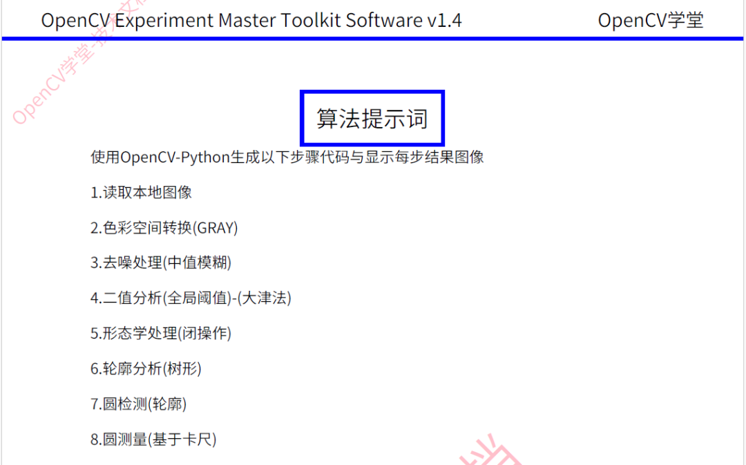 OpenCV实验大师导出完成流程与每步的运行结果显示如下: